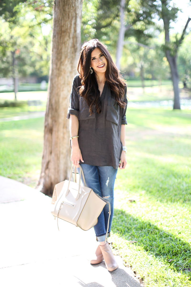 I wore this outfit more than once over the weekend – just with different shoes. It’s a simple look but we were so busy while in Dallas so it was the perfect running around & getting things done. And this top is super lightweight so I didn’t burn up since it is ridiculously hot in Dallas!