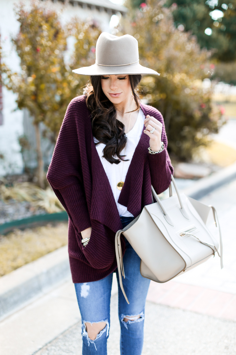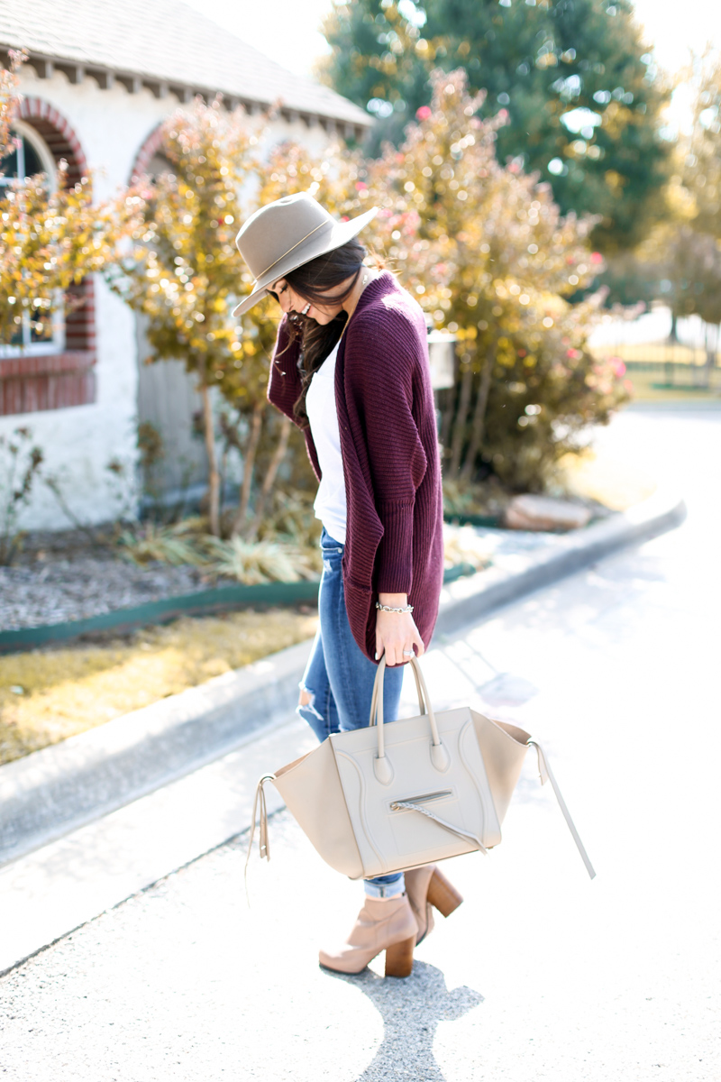CARDIGAN: BP ($48 – wearing size small & comes in other colors!) | TEE: Madewell (*personal fave!) | DENIM: AG (love these under $100) | BOOTIES: Jeffrey Campbell | BAG: Celine (love this beige tote!) | NECKLACE: BaubleBar | WATCH: Michael Kors | BRACELETS: David Yurman (all linked in the tool below) | RING: BaubleBar | HAT: Janessa Leone (she’s my fave hat designer!) | LIPS: ‘Cherish‘ + 206 (such an amazing gloss!)