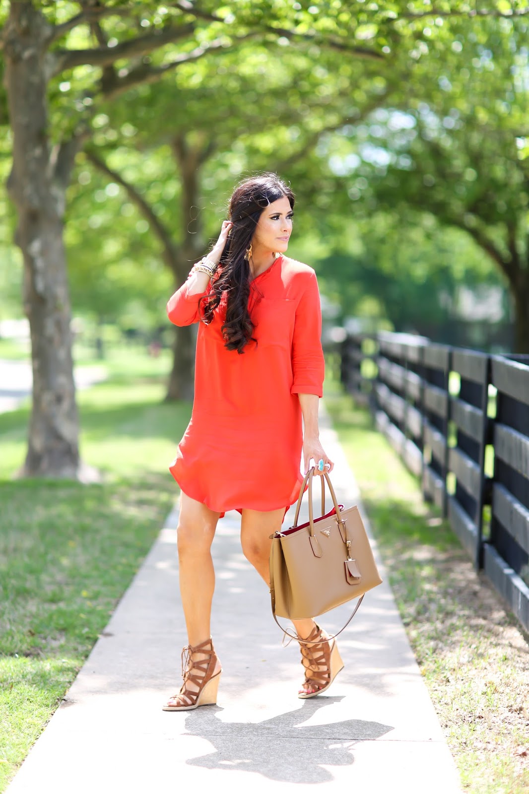 DRESS: sold out 🙁 (similar HERE & HERE) (similar shirt style) | SHOES: Schutz c/o (similar HERE & HERE) | HANDBAG: Prada (similar HERE) | WATCH: Tory Burch c/o (more designer watches here) | EARRINGS: Elizabeth Cole (love these!)