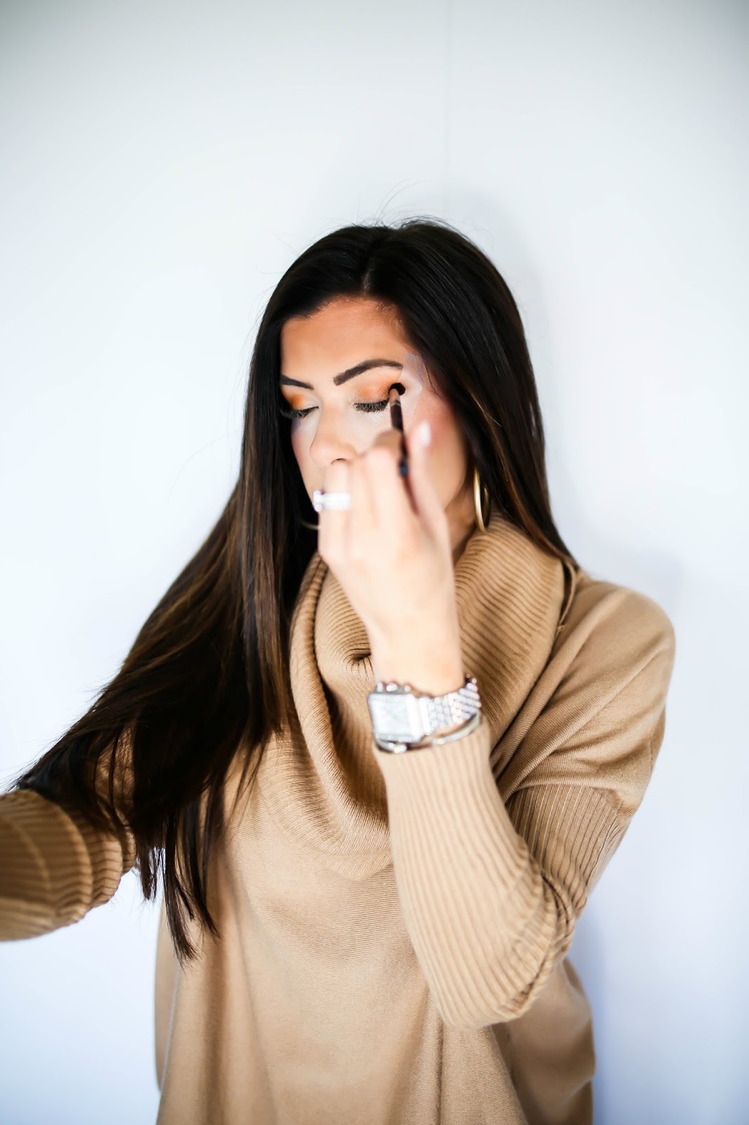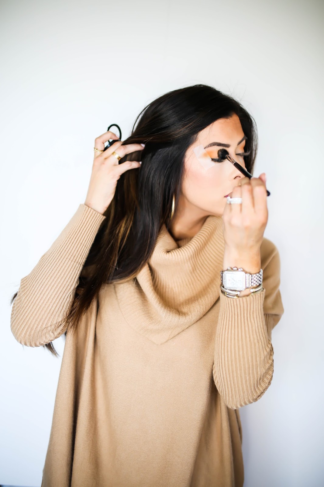 Since fall is right around the corner, I thought I’d share this easy, step-by-step tutorial on how I do a glam smoky eye. Keep in mind I am not a makeup artist, this is just how I do it & it is super easy – we all like easy, right?! The look I am going for is warm, yet glittery glam. Nothing too crazy, but will look good with your fall outfits!