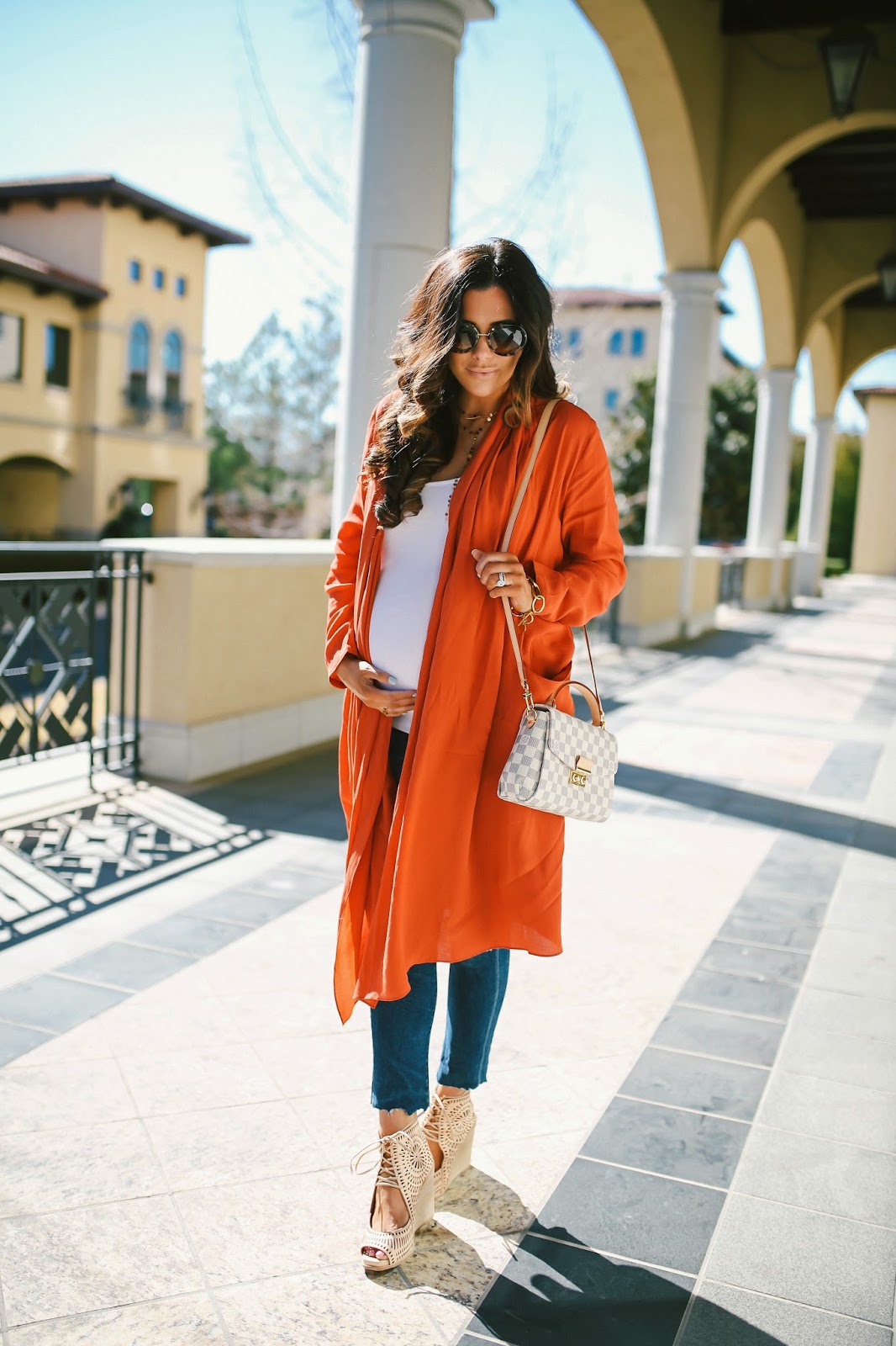 I love this lightweight cardigan – and recommend it for now through spring.. or even for the beach. It’s a thin material and isn’t hot at all. I am sure I’ll be getting my money’s worth out of it because the weather here has been chilly in the AM and nice all day. AND I love wearing tanks and throwing a cardigan over the top. My bump look 10x larger when I wear white – it cracks me up!