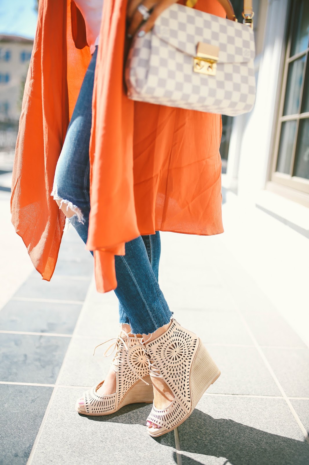 CARDY: Line & Dot | TANK: BP (so cheap – love these!) | DENIM: Citizens of Humanity (they are maternity, similar HERE non-maternity) | NECKLACE: Styled Collection c/o (it’s $34 & a dupe for one of my favorites HERE) | WEDGES: Jeffrey Campbell (on sale today HERE) | BRACELETS: David Yurman, J.Crew | WATCH: Michele | SUNGLASSES: Prada (stolen from Elle) | BAG: Louis Vuitton “Croissette”