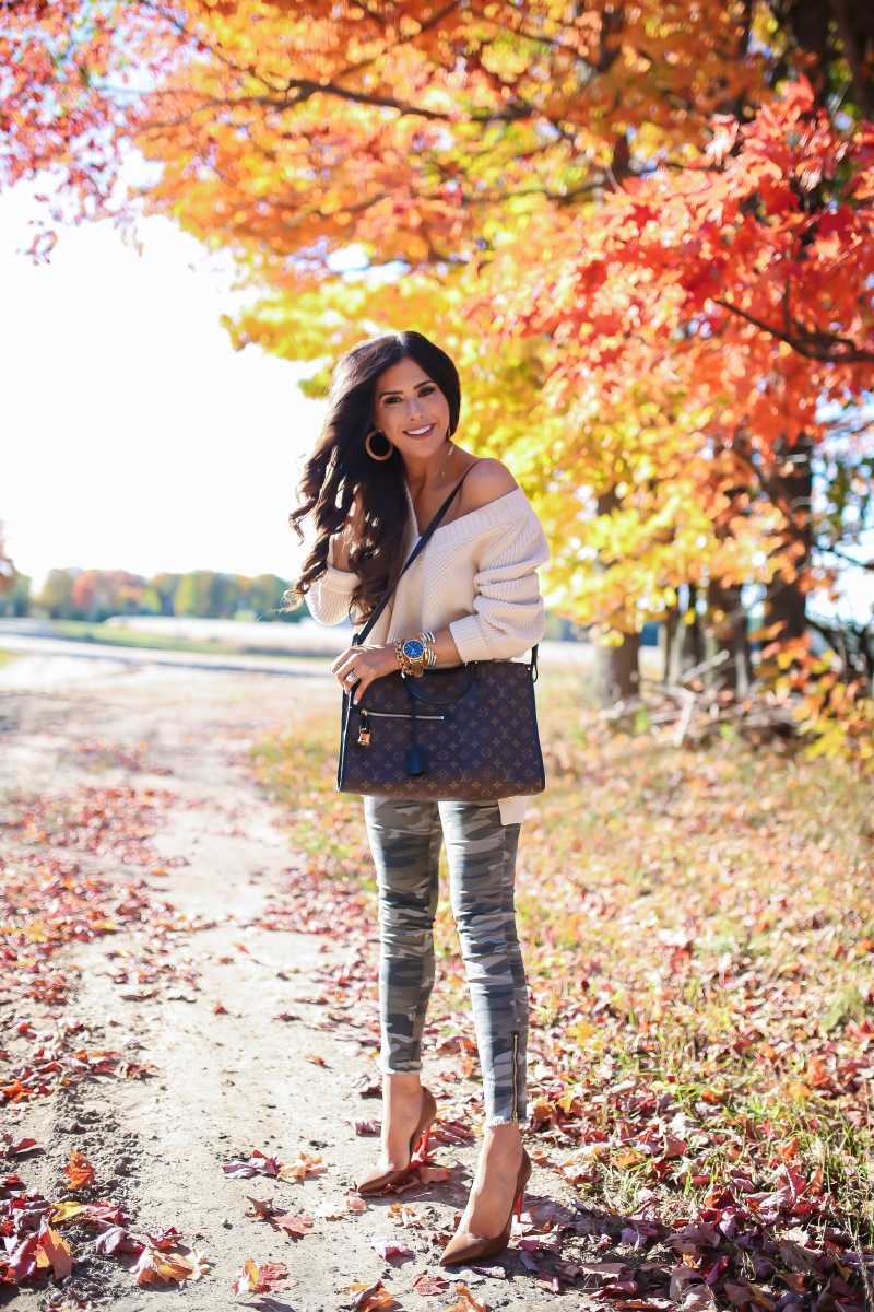 fall fashion 2017, cute fall outfits pinterest, fall outfits with louis vuitton bags, fall outfits oversized sweater, fall outfit camo jeans, Louis Vuitton Popincourt MM, emily gemma, the sweetest thing blog, michigan trip, travel blogger