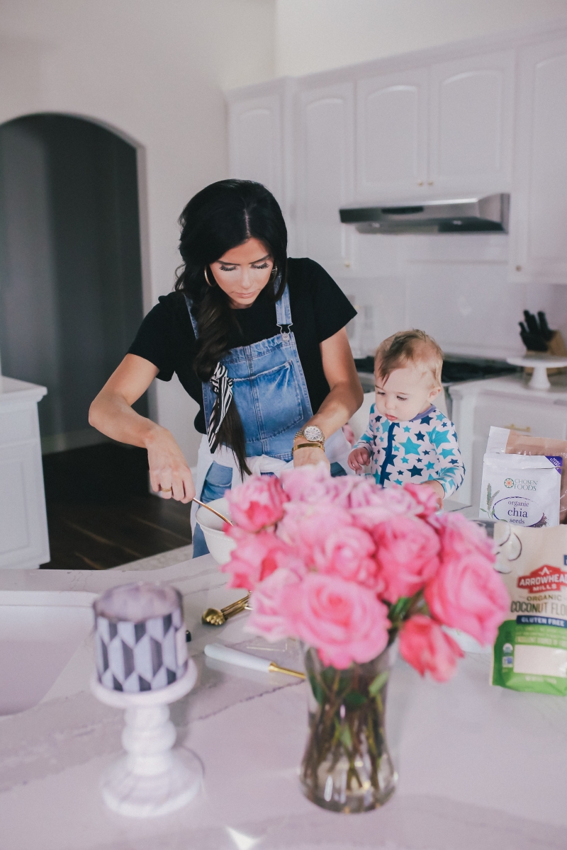 It’s been dark and rainy here in Tulsa all week so the photos are a little dark but the recipe is what is so important! First of all, I have a serious sweet tooth and I loooove muffins [blueberry] but I also love chocolate. The bad part is that muffins are just so stinking high in calories though since they are full of sugar and don’t do anything good for you! I randomly found this recipe online and thought I’d give it a try and I was rather pleased with how they turned out. They aren’t like eating a Reese’s Cup Egg [lol, my Easter fave!] but they are super good if you are trying to eat clean and really need a sweet snack. OR, if you are like me and can only eat on-the-go types of things for breakfast. In the mornings I am usually playing with Luke while simultaneously working so I rarely get the time to make a healthy breakfast. It is nice to have these pre-made to eat or truly – snack on if I get a craving for sugar.
