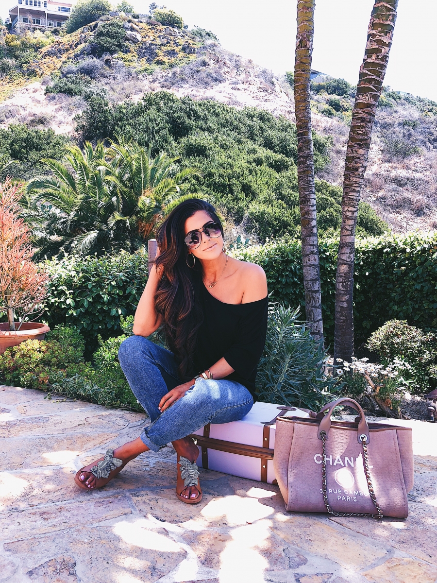TOP: Treasure & Bond [highly recommend, comes in 3 colors and is $25!] | DENIM: H&M [I love these but I have heard that some of you don’t love them, so THESE are a similar style that are super flattering!] | WEDGES: Treasure & Bond [read my full wedge review HERE] | NECKLACE: The Styled Collection | WATCH: Michele | BRACELETS: Nadri, The Styled Collection | HAT: Lack of Color [similar, but more affordable styles HERE] | HANDBAG: Chanel [Deauville in ‘Ecru’ size large!] Buy pre-loved Deauville’s HERE & HERE. [Mine is from last summer’s collection and is no longer available in Chanel boutiques!