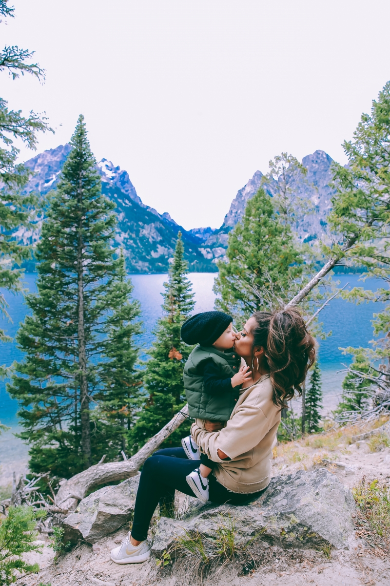 One of the main reasons we decided to go to Jackson Hole was because John and I really wanted to visit Jenny Lake! I’d seen photos from the area and just recently my sisters best friend was here with her family and posted some photos and John and I were like “next trip!”. We love traveling to fall locations and we’d seen that they were already getting fall temps and the leaves were changing already. In fact, the second day we were there we noticed that so much of the green was turning yellow right in front of us, so crazy! I posted a video to my IG stories this morning of the yellow leaves fall from the trees and Luke running around in them.