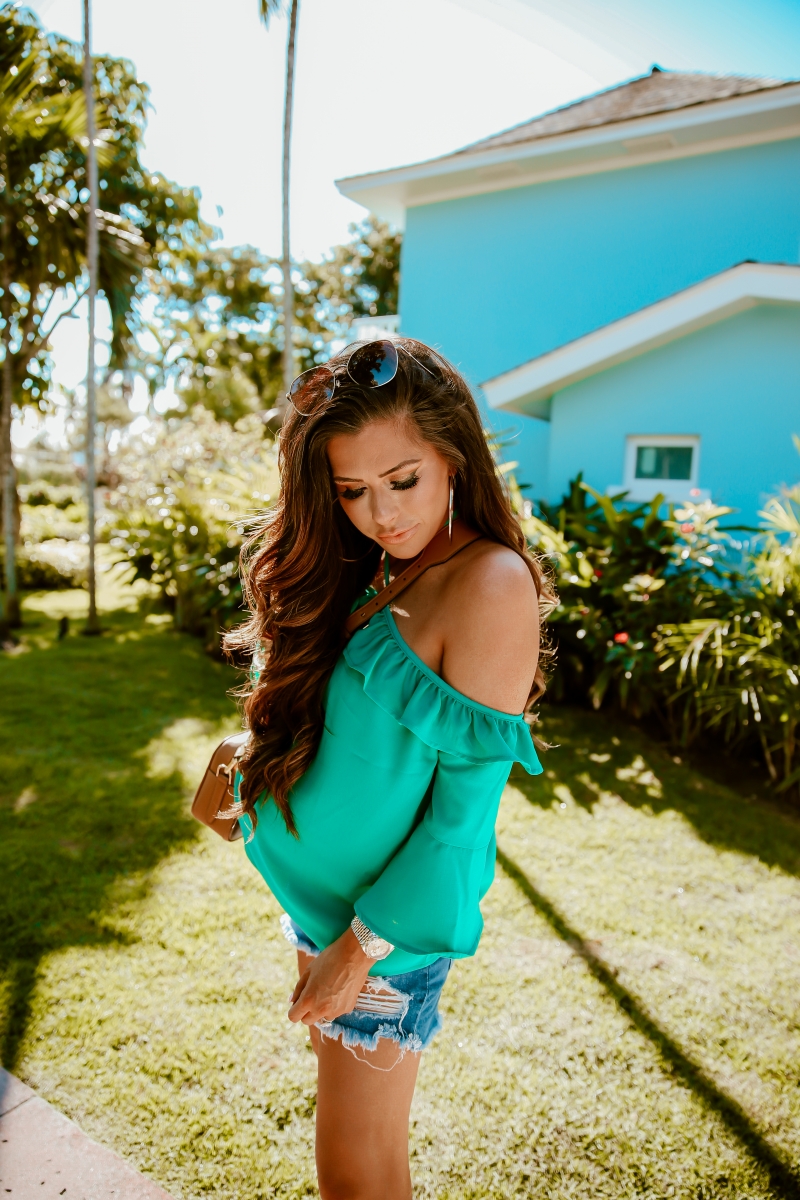 TOP: BB Dakota [wearing medium to cover bump – this is not maternity!] | MATERNITY SHORTS: DL1961 [if I weren’t expecting, I’d be wearing THESE though- so so cute!] | WEDGES: Steve Madden [love THIS pair – contemplating purchasing them!] | SUNGLASSES: Gucci [obsessed] | EARRINGS: Jenny Bird | HANDBAG: Fendi | WATCH: Rolex [amazing dupe option HERE] | LIPS: ‘Whirl‘ + ‘KIM KW‘ + ‘No Color’ Gloss