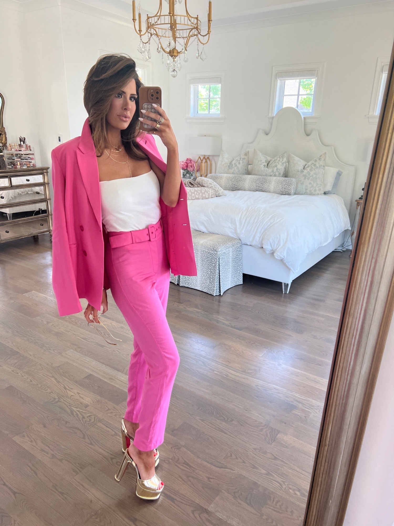 BLAZER: Bardot  [wearing a small] | PANTS: Bardot | SHOES: Christian Louboutin | STACKED RING: Spinelli [similar option HERE, HERE & HERE] | RINGS: Cartier [similar options HERE & HERE] |NECKLACE: Express